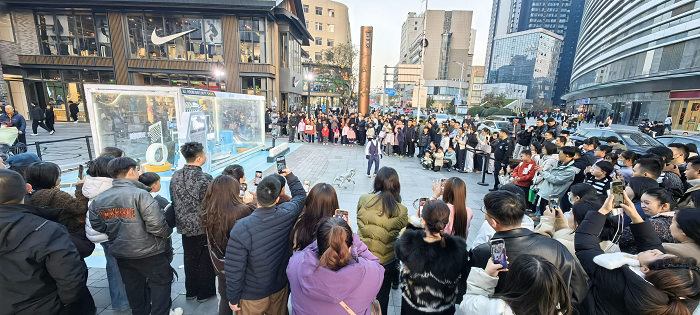 在历史文化浓郁的徐州文庙街区,美的空调设置了快闪打卡展会,现场更是人潮涌动,热闹非凡。美的美家·全面风空调惊艳出街大秀"空气超跑"高颜值和硬核科技魅力,让当地消费者对这款性能与舒适双突破的空调新物种,有了更深入的认知;智能机器人灵活舞动双臂与科技玩家亲密互动,萌趣的机器狗表演展示精彩绝活,吸引了大批市民驻足围观、拍照留念,沉浸于传统与现代交融的奇妙体验。